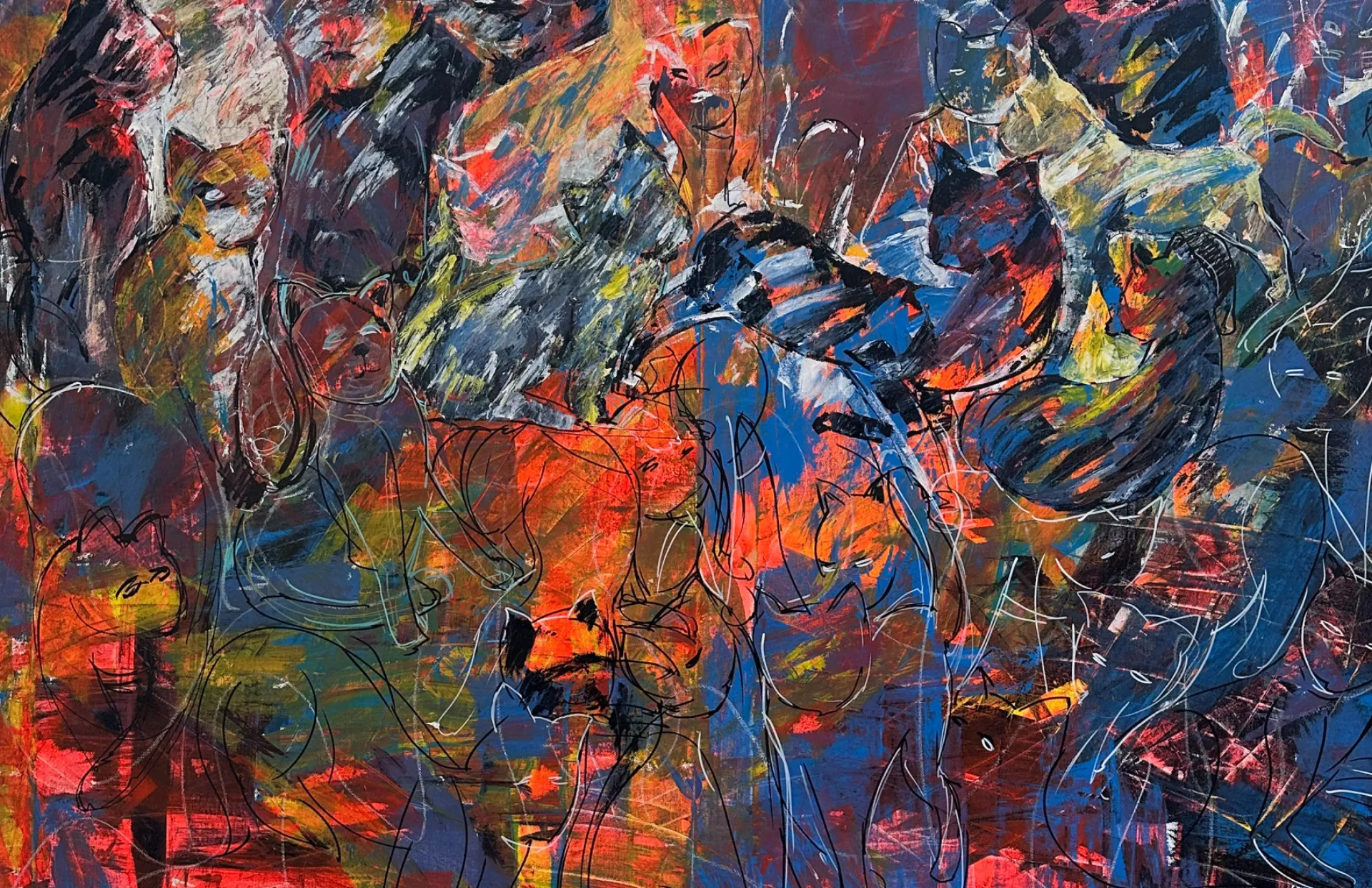 Центральным открытием моей практики стала «нить» — фундаментальная единица коврового плетения — перенесённая в масло и смешанные техники. Работа с гобеленами изменила моё понимание живописной поверхности: особые мазки, наложение фактурных слоёв и тонкие цветовые переходы создают эффект тканой структуры, придавая холсту объём, дыхание и то, что я называю «теневыми нитями» — ритм между светом и тьмой, который оживляет всё целое.