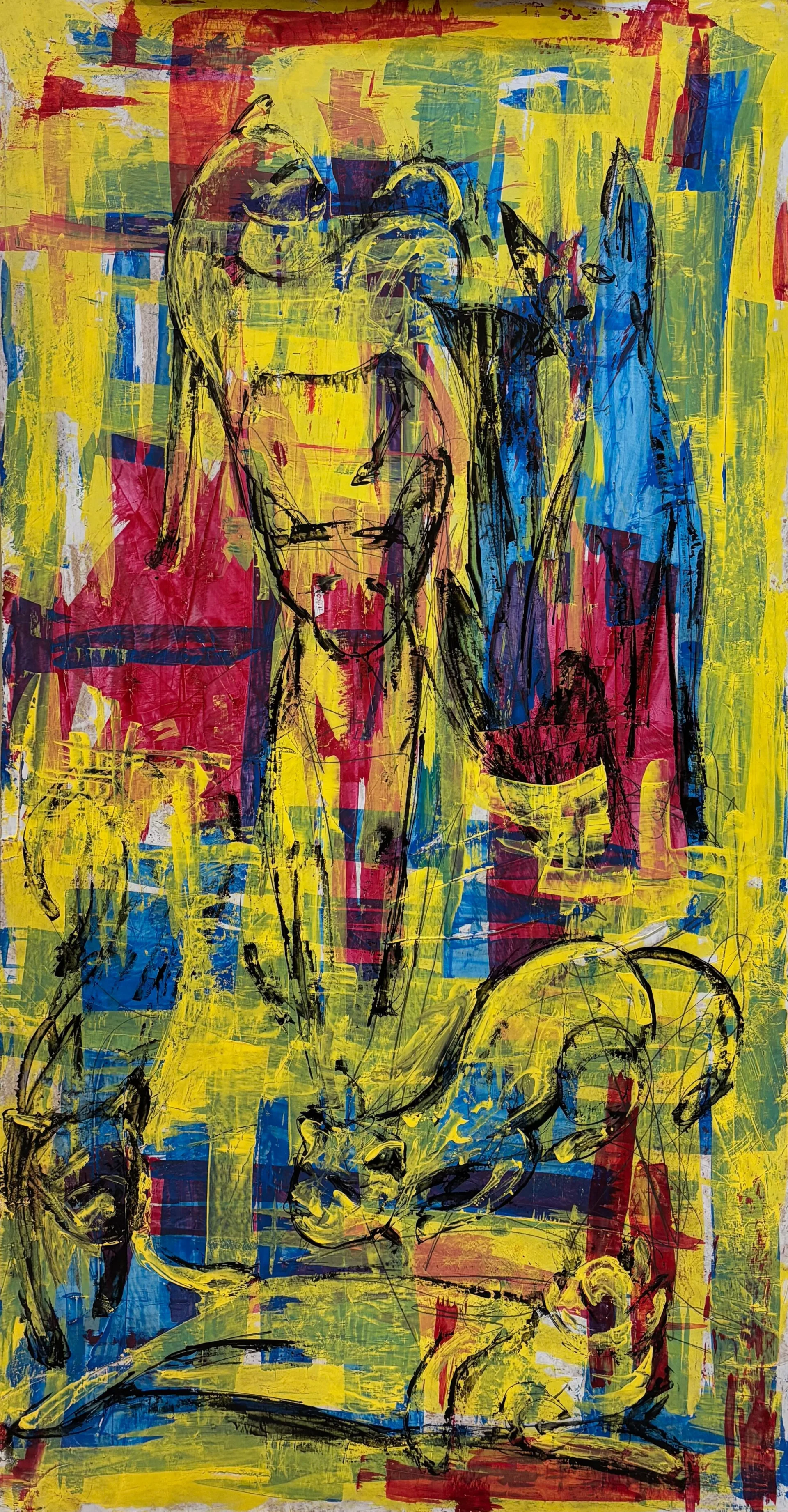 Mixed media on cardboard